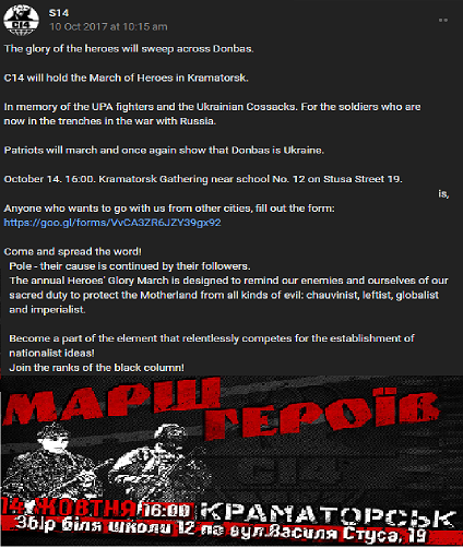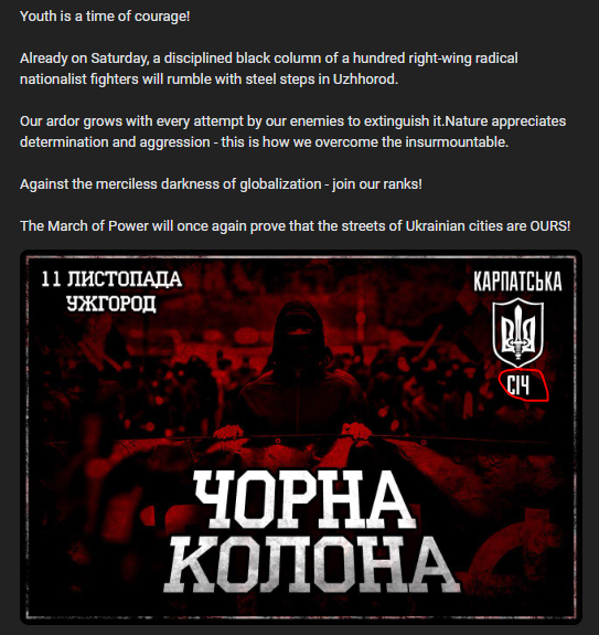 The March of Power, anti globalist neo nazi march advertised on VK. Uzhorod. 11th November 2017.
