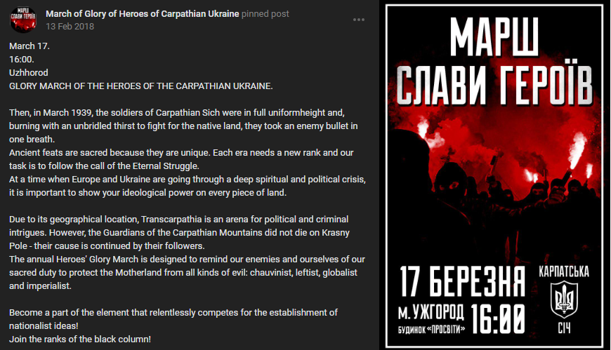 The March of Glory of Heroes of Carpathian Ukraine, a march in order to commemorate their war heroes. March 17th Uzhorod