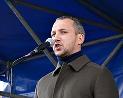 The first commander of the battalion of the special police patrol service “St. Mary” - Dmytro Linko. He was elected People’s Deputy of Ukraine on the lists of the Radical Party of Oleg Lyashko.[6][7] Linko resigned as commander, but remained in the battalion as a private.