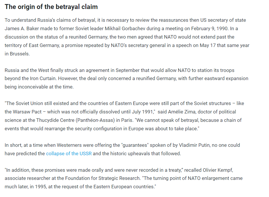 And that there was no formal treaty between the West and USSR surrounding expansion, and so Western nations aren’t obligated to keep NATO contained