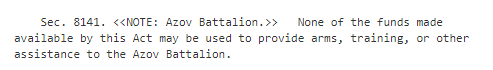 Even in 2022, with US aid to Ukraine at its height, Congress still included a provision specifically blocking aid from going to Azov in their 13 billion dollar support package for Ukraine.