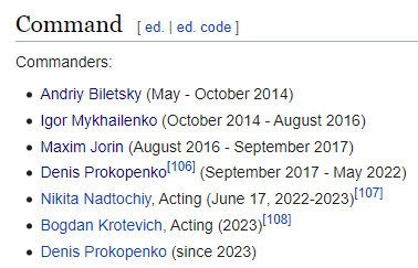 And this isn’t some well hidden secret either, we got the details about these commanders from Ukrainian language Wikipedia, which cites public news sources, in the case of Maxim Jorin one of the sources is an interview with the man himself, where his ties to both Azov and National Corps are mentioned by name in the first 2 lines of the article.