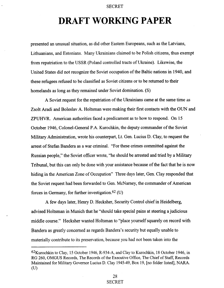 In fact the Soviets knew this full well, as we found in another CIA document that the Soviets wrote to the US authorities in 1946 on their desire to bring Bandera to trial, but that “this can only be done with your assistance because of the fact that he is now hiding in the American Zone of Occupation”. As we previously discussed in our history episode, because the Americans refused to cooperate, the Soviets resorted to assassinating Bandera.