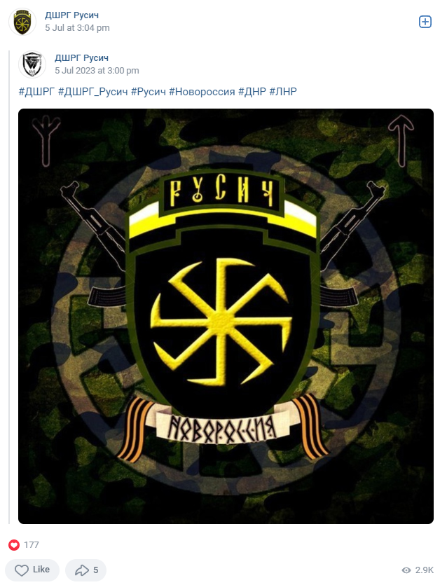 Rusich is also known to have ties to the Wagner Group PMC, who anyone following this conflict must be aware of by now, but Wagner Group isn’t just relevant for being a dodgy combat unit made up of convicts, oh no, these “Denazifiers” also have a lot of ties to Nazism as well.