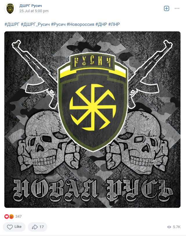 Rusich has also happily shown off other Neo Nazi symbols on their social media, including the original Black Sun and the Tyr rune and even the SS Totenkopf, they are possibly the most openly Nazi group we’ve found, and yet this doesn’t stop them mingling with the so-called “Denazifiers” of Ukraine.