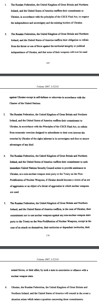 These were guarantees that Ukraine received in exchange for giving up its nuclear arsenal and joining the Non Proliferation Treaty, what Zelensky said in his speech is that this agreement wasn’t working, and that if it continued to fail to provide security to Ukraine it would become a worthless scrap of paper.
