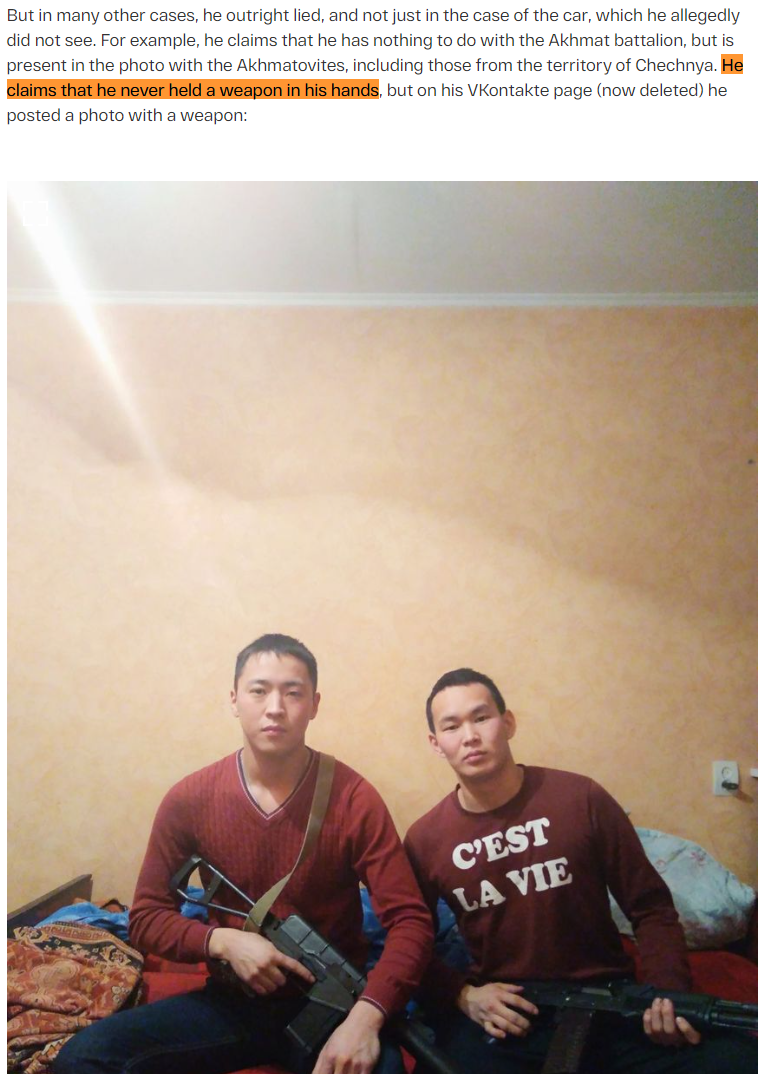 Mongush was also quoted by The Insider claiming he had never held a weapon before, and that he had reported himself to the FSB after the castration video emerged, with the FSB detaining him for 2 days, and then exonerating after uncovering the apparent “Ukrainian fake”.